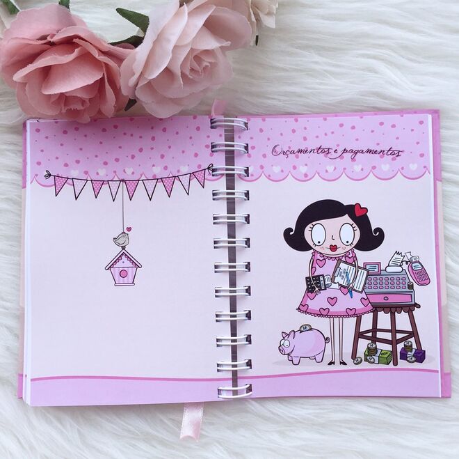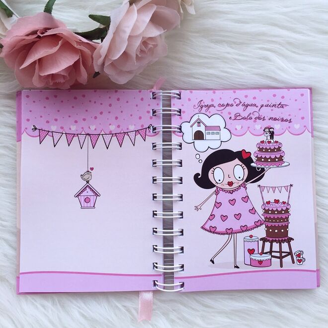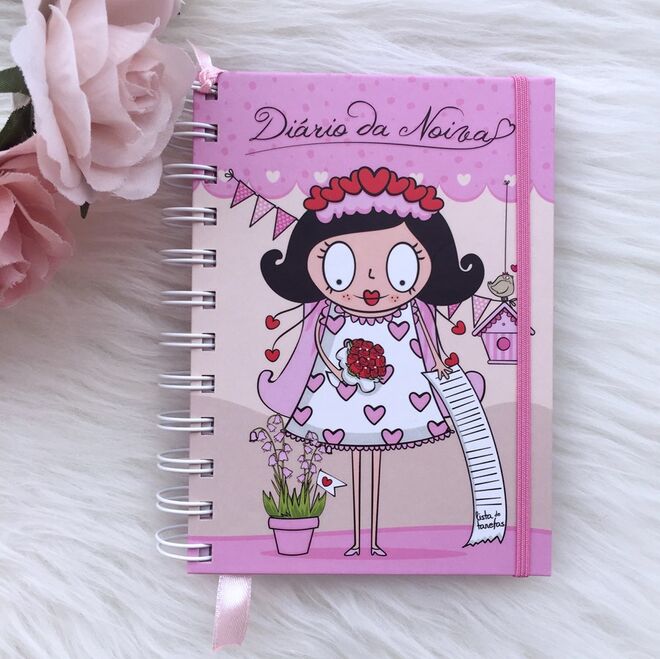 Outra das grandes novidades pode ser a prenda perfeita para uma noiva especial: o Diário da Noiva. O pequeno diário aiaimatilde é formato A6, tem argolas, é de capa dura, tem um elástico para fechar e uma fita para marcar a página. O seu interior é composto por 12 separadores ilustrados e 10 páginas com linhas para anotações correspondentes a cada separador que ajudarão qualquer noiva a organizar melhor o seu dia de sonho.