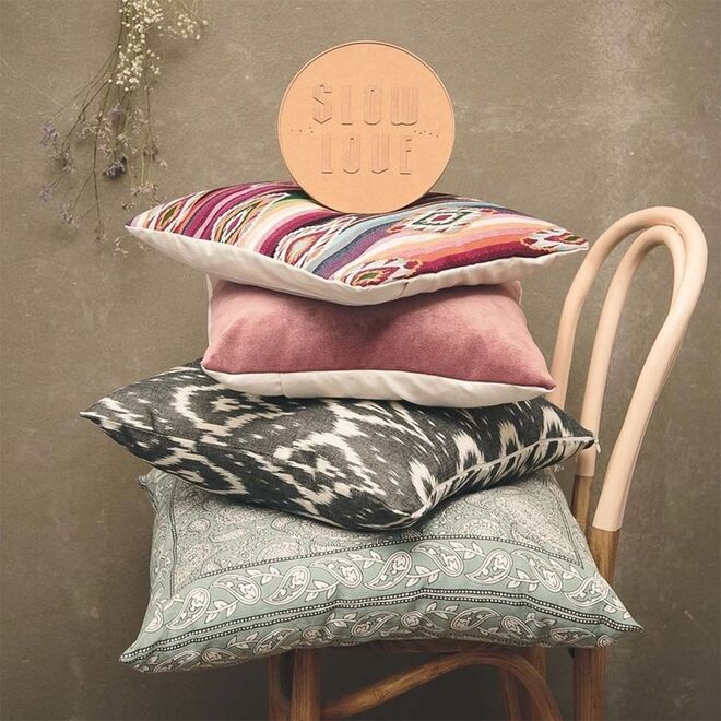 Tal como nas coleções de roupa, o estilo boho está presente em cada uma destas peças feitas à mão. A linha de decoração foi pensada para criar espaços acolhedores e com um certo equilíbrio cromático.