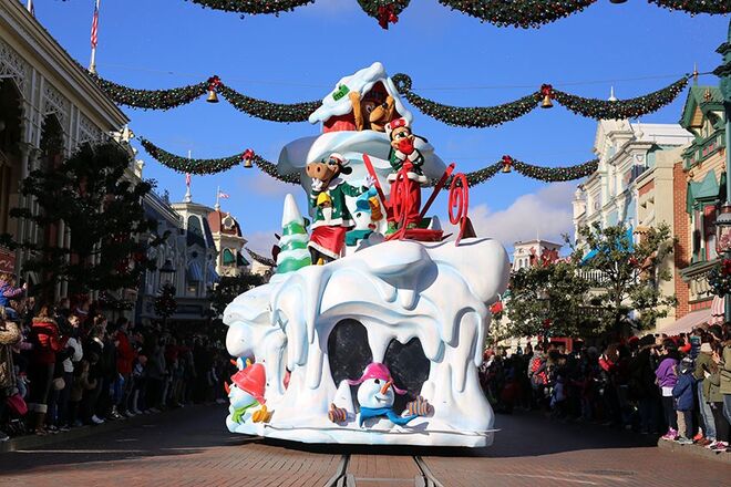Os visitantes poderão desfrutar do grande desfile de Natal que percorre o Parque Disneyland® duas vezes por dia. Mais de 40 artistas e 20 Personagens Disney como o Mickey, a Minnie ou a Margarida entre outros, juntam-se para celebrar a chegada da época mais aguardada do ano da forma mais festiva possível. Este ano, com duas novas carruagens, "A Fábrica dos Brinquedos", onde Os Três Porquinhos estão muito atarefados a preparar os brinquedos que as crianças irão receber no dia de Natal; e "Diversão na neve", onde o Max e o Pluto se divertem à grande com os seus amigos bonecos de neve.