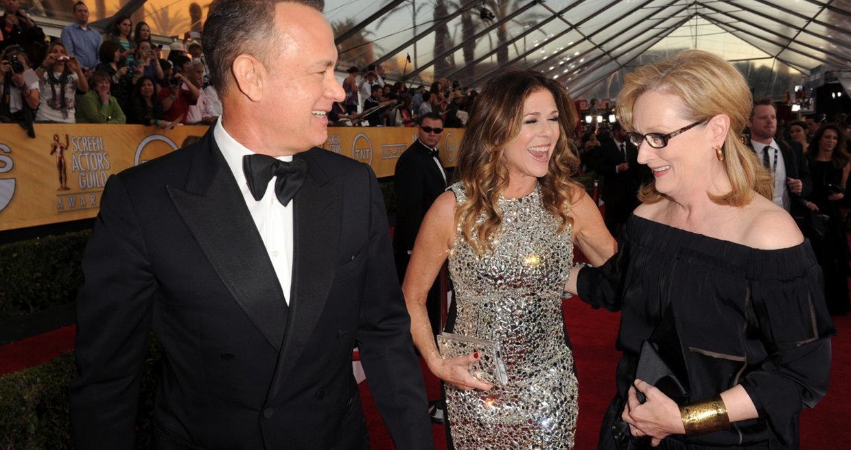 1 de 3 /Tom Hanks com a mulher Rita Wilson ao lado de Meryl Streep