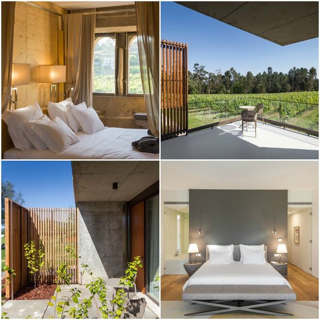 As restantes acomodações da ala moderna, as suites Camellia e os quartos Castanea e Vitis, oferecem um ambiente moderno, acolhedor e sereno, e apresentam uma decoração sofisticada e uma magnífica luminosidade. Todos os quartos dispõem de varandas ou alpendres com uma vista exclusiva sobre a piscina e os vastos campos de vinha, onde poderá desfrutar de um fantástico pôr-do-sol.