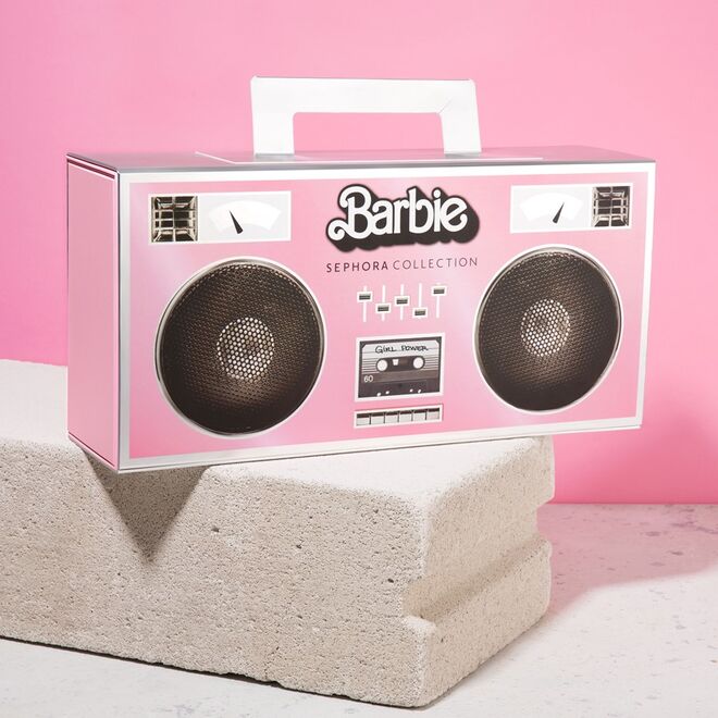 Inspiradas pela Boom Box dos anos 80, a gigante de cosmética e a boneca mais famosa do mundo criam um coffret com três produtos de edição limitada.