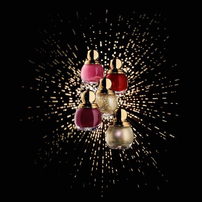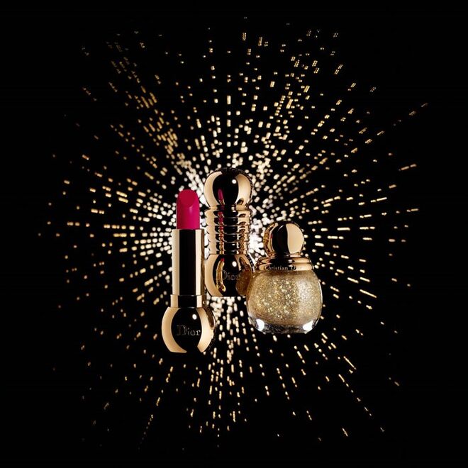 O Diretor de Criação e Imagem de maquilhagem Dior decidiu juntar o ouro com a cor cinza icónica da Casa Dior, e contrastar o brilho delicado do marfim e da platina com o vermelho intemporal e o fúcsia. Beleza inspirada de ouro, onde o roxo profundo e o cobre esbatem os pigmentos luminosos suaves do cinza verde e do rosa claro.