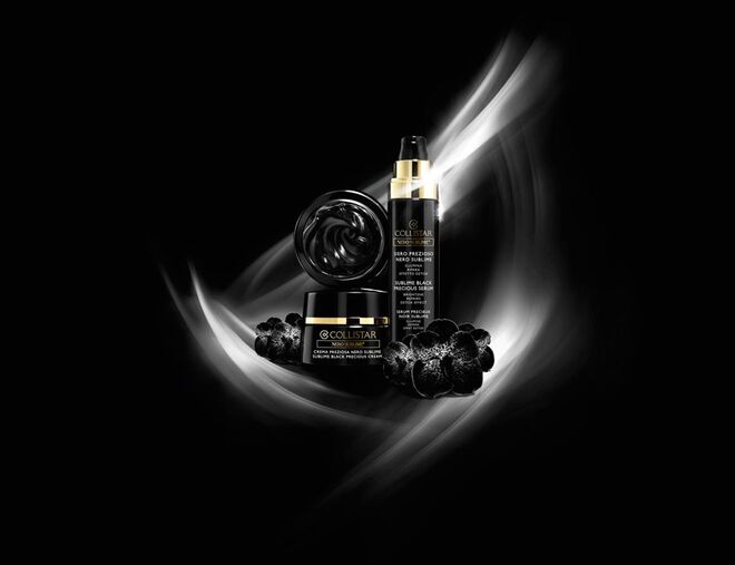 Três especialidades, três elixiris de beleza e juventude que desaparecem ao contacto com a pele, revelando o seu poder instantaneamente: Sublime Black Precious Serum, Sublime Black Precious Cream, Sublime Black Precious Mask.