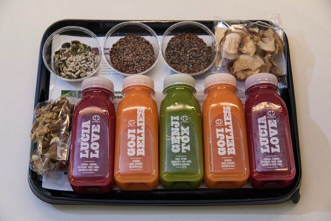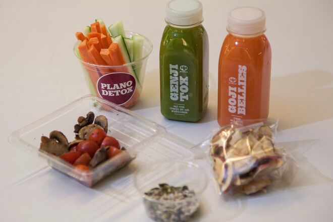 Para começar, pode adquirir o Kit Base Detox para o programa de 1 dia (Detox Extreme), composto por 5 sumos funcionais de 250ml cada, mix de sementes, frutos secos e fruta desidratada (18,95 €), Este é o primeiro passo para iniciar qualquer um dos níveis do plano Detox.