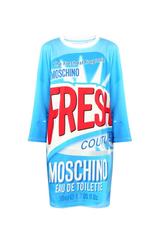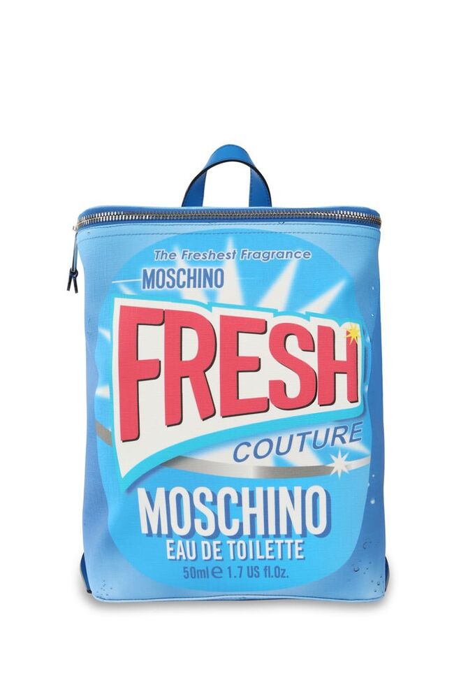 Agora percebemos o porquê desse objeto. A nova fragrância da Moschino é agora apresentada numa embalagem com essas precisas medidas e aspeto. A ideia de Jeremy Scott foi a de contrapor o luxo e o requinte de uma fragrância de alta costura com a embalagem mais comum utilizada nos produtos de limpeza doméstica: o frasco "spray Multiusos".