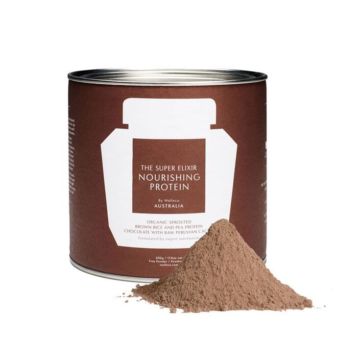 Feita a partir de arroz integral germinado orgânico e proteína de ervilha, com o delicioso cacau crú do Perú, a proteína SUPER ELIXIR ™ NOURISHING é uma proteína completa feita de plantas, que contém os nove aminoácidos essenciais, como os encontrados na carne vermelha, nos ovos, no frango e no peixe (sem hormonas ou pesticidas).