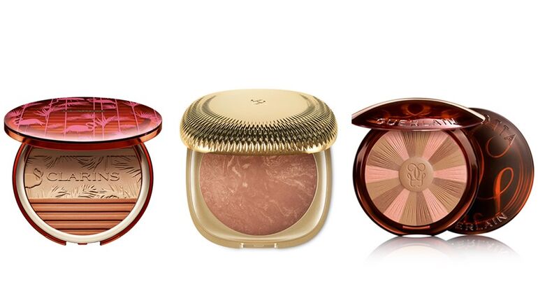 Conhecemos bem a utilidade da maquilhagem quando o sol não ajuda a bronzear o rosto. E os pós bronzeadores multicoloridos e multipigmentados são o ideal para esculpir e iluminar de forma natural. Enriquecidos com partículas perladas ou douradas, são formulados para "aquecer" a pele ligeiramente, deixando um acabamento translúcido subtil. Não tema alguns metalizados que podem conferir à sua tez um aspecto "beijada pelo sol" muito natural.