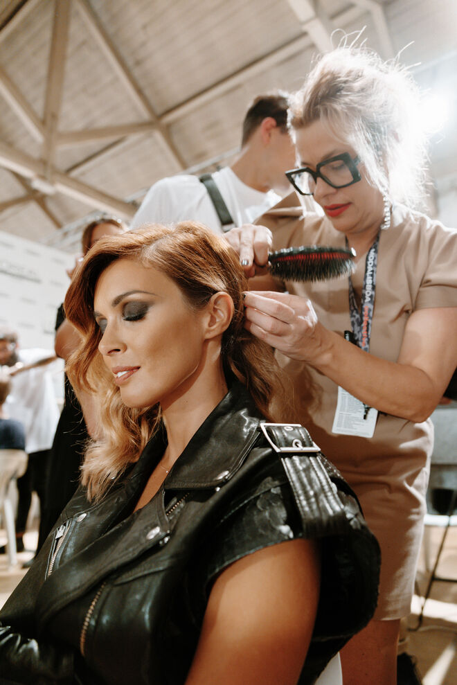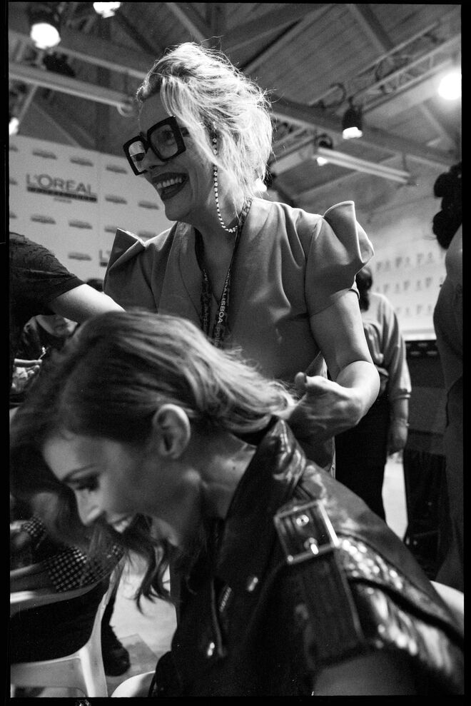 "Fiz um mais girly e um mais arriscado e foi esse, claramente, que o público escolheu. Se calhar é mais fora do que estão habituados a ver e eu acho curioso", contou à Máxima com um sorriso cúmplice, confirmando que tinha gostado muito da opção vencedora. Maria trata diariamente dos fios de cabelo por conta dos excessos com secadores, pranchas e produtos de styling devido à profissão. "Faço máscara uma vez por semana e também acabo por fazer em salão uma máscara com a Helena, com produtos de tratamento", explica à Máxima. Os seus produtos de eleição são o champô, condicionador e máscara. "São essenciais, não consigo ficar sem, mesmo quando vou para fora, mesmo que seja um fim de semana, eles vão comigo" explica, nos bastidores da 53ª edição da ModaLisboa. Aproveitámos a oportunidade para tomar nota do passo a passo do penteado com a hairstylist Helena Vaz Pereira.