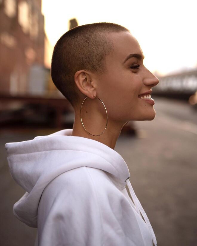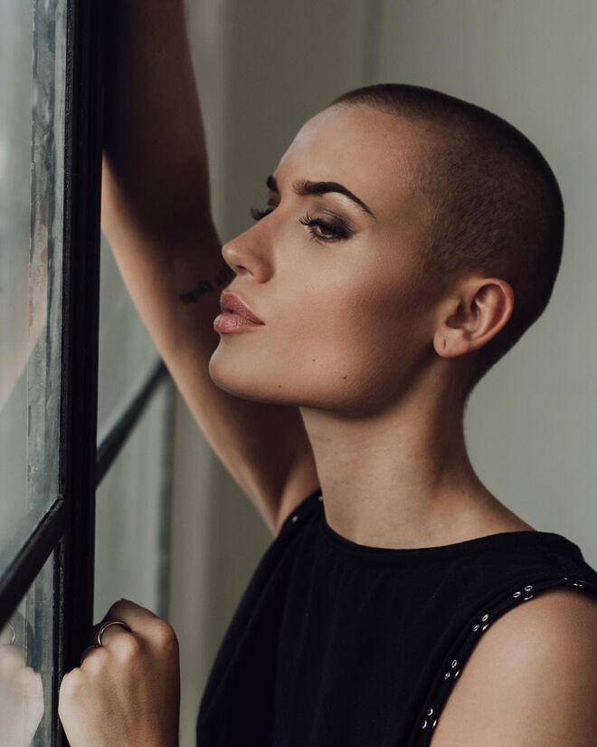 Vendela Lindblom quer quebrar as noções preconcebidas do que significa ter uma cabeça rapada.