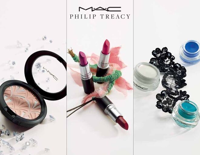 M·A·C PHILIP TREACY celebra uma coleção única – o chapéu londrino mais vanguardista com a marca de maquilhagem mais transgressora. Mais que chapéus, as peças de Treacy são obras de arte, esculturas que transformam quem os usa. Fazendo uma revisão da sua extraordinária trajetória, Treacy escolhe os seus trabalhos com Alexander McQueen, Lady Gaga, Isabella Blow, Sarah Jessica Parker e alguns dos desenhos mais escandalosos apresentados no Casamento Real para conceber um trio de impressionantes criações, desenhadas para destacar olhos, lábios e a estrutura do rosto. Uma coleção de surpreendentes tons, ideais para realçar alguns dos rasgos mais evocativos do rosto. Três lipsticks clássicos, mas ao mesmo tempo descarados, nos tons rosa brilhante, bordô e groselha. Os Highlight Powder iluminam a pele nos tons champanhe dourado e rosa suave, ambos com toques prata, que oferecem ao rosto um subtil brilho metalizado. Os olhos embelezam-se com o toque de cor intensa dos Fluidline, e enchem-se de luz com os Paint Pots nos tons platina e ouro velho. Deixa todas as tuas inibições de lado e destaca-te dos outros.