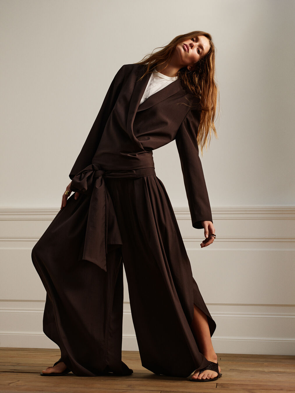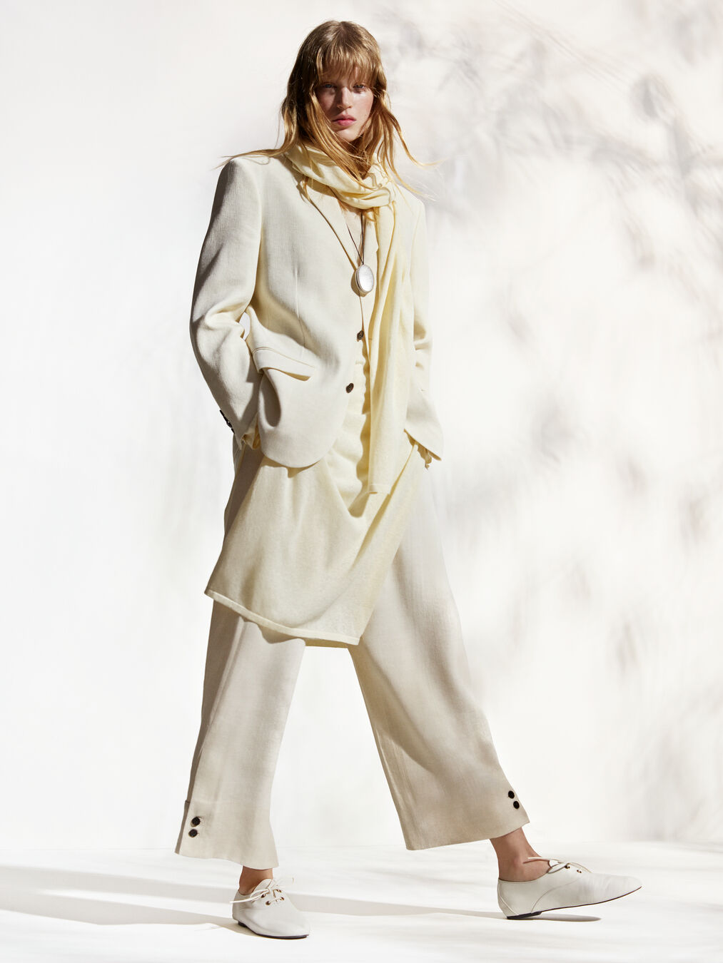 A construção das peças acompanha este mesmo rigor. Volumes controlados, proporções equilibradas e sobreposições subtis desenham um guarda-roupa que se move com naturalidade entre o contemporâneo e o intemporal. Aqui, o luxo não se afirma, sugere-se. É o chamado quiet luxury, onde cada detalhe importa, mas nada é excessivo.