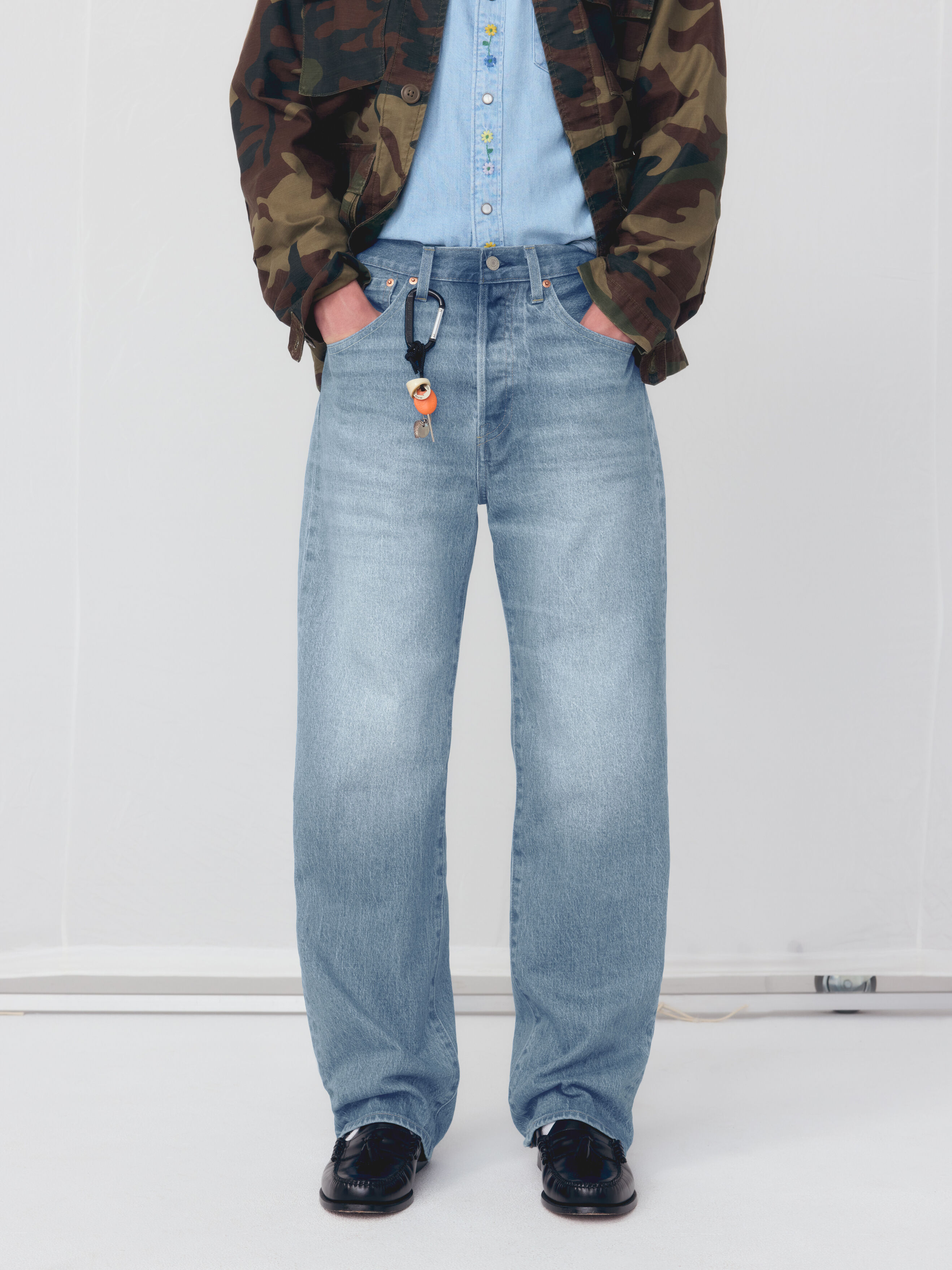 Para eles, a coleção é um exercício de autenticidade com liberdade criativa. A icónica família 501® expande-se e reinventa-se: os novos 501® Loose marcam um momento histórico ao introduzirem, pela primeira vez em 150 anos, uma versão verdadeiramente larga deste modelo lendário. Já os Baggy Barrel trazem um corte distintivo que equilibra o ADN clássico com o conforto dos dias de hoje.