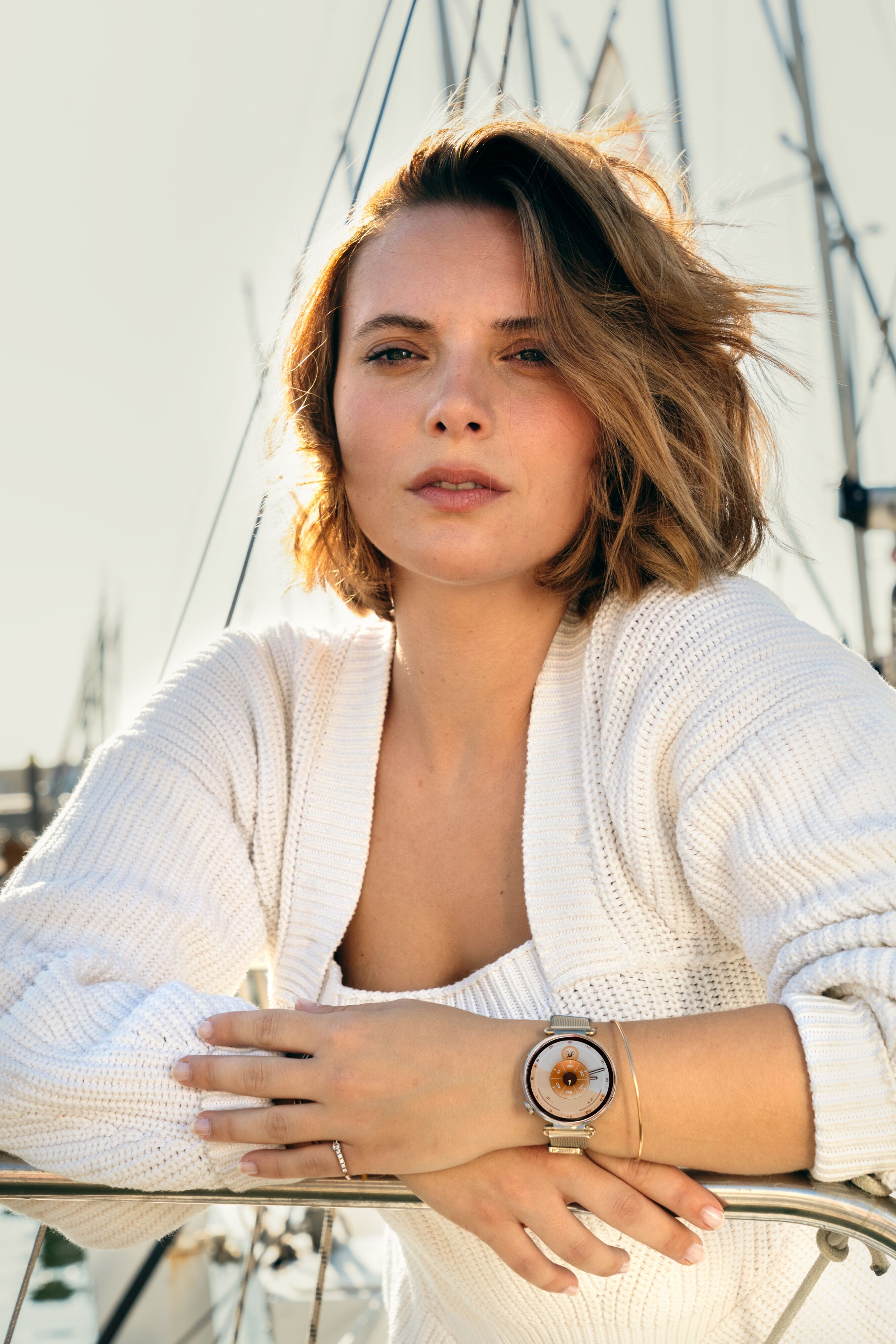 No shooting, que contou com o apoio do Sport Algés e Dafundo – Posto Náutico, a modelo foi fotografada a correr, andar de bicicleta e em momentos de descontração urbana. Seja em modo treino, seja a beber café junto ao Mosteiro dos Jerónimos, o smartwatch destacou-se pela versatilidade e pelo toque sofisticado do modelo Purple e da versão Gold Milanese.