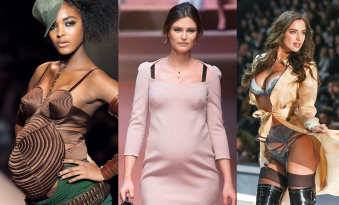 Se umas estavam grávidas há poucas semanas, outras exibiram enormes barrigas em semanas da moda internacionais. Alessandra Ambrosio, Irina Shayk e Eva Herzigova são apenas algumas das modelos que fazem parte da galeria em baixo.