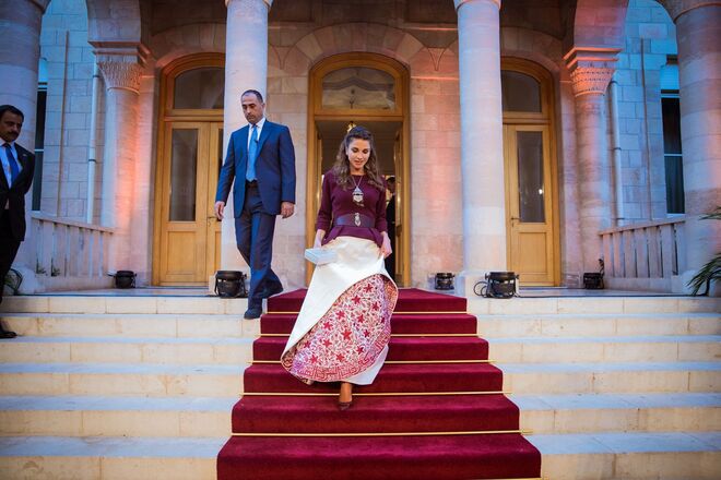 29. Aos 28 anos, tornou-se a mais jovem rainha do mundo, quando Abdalá foi coroado rei. Usava um vestido Elie Saab.