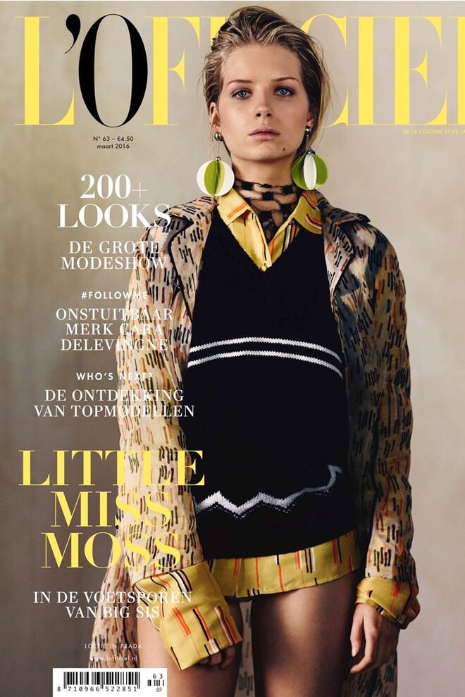 2016 parece vir a ser um bom ano para Lottie Moss. Depois de conseguir a primeira campanha publicitária como rosto da marca norte-americana de acessórios Botkier New York, eis que a meia-irmã de Kate Moss se estreia na capa da edição de março da revista L'Officiel holandesa.