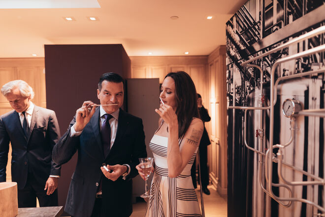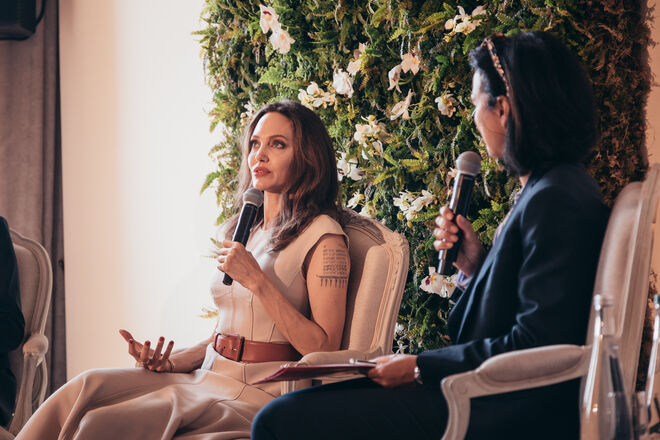 Depois de o primeiro filme publicitário para a Guerlain ter sido realizado (por Terence Mallick) na casa que a atriz tem em França, desta vez a equipa rumou ao sudoeste asiático. "Trabalho no Camboja há mais de 17 anos [através da fundação Maddox Jolie Pitt] e tenho lá a minha própria casa. Fazia todo o sentido filmar lá. Falámos muito sobre isso, sobre o ethos da Guerlain, sobre a ideia de explorar outras culturas, sobre o compromisso com a biodiversidade. A natureza desempenha um papel importante neste filme e é realmente inspiradora", explica quando questionada sobre o filme de 45 segundos realizado pelo mexicano Emmanuel Lubezki (já distinguido com um Óscar e colaborador regular dos realizadores Alfonso Cuáron e Alejandro González Iñarritu). A certa altura é interrompida por Laurent Boillot, presidente e CEO da Guerlain, sentado a seu lado e de frente para a plateia que, em jeito de curiosidade, acrescenta que durante as filmagens a atriz recebeu em casa a visita de um monge que abençoou o local. Foi também nessa altura que recebeu algo particularmente simbólico para ela: o passaporte cambojano.