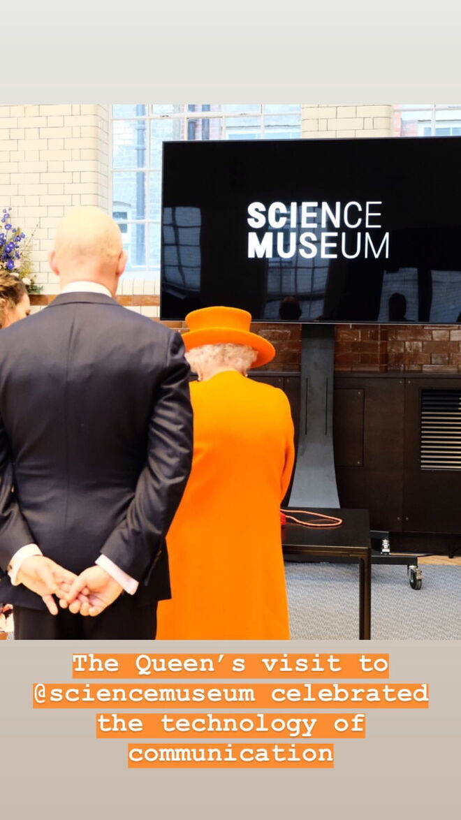 A monarca britânica esteve no Science Museum, em Londres.