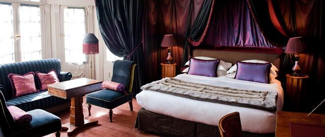 19 de 31 /OSCAR WILDE | O Hotel d’Alsace (agora chamado L’Hotel) em Paris foi a última morada do autor de O Retrato de Dorian Gray. Wilde viveu no hotel durante a década de 1890, e há relatos que dizem que uma das suas últimas frases foi: “O papel de parede e eu estamos a lutar num duelo até à morte – um de nós tem de ir.”