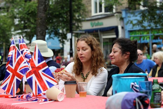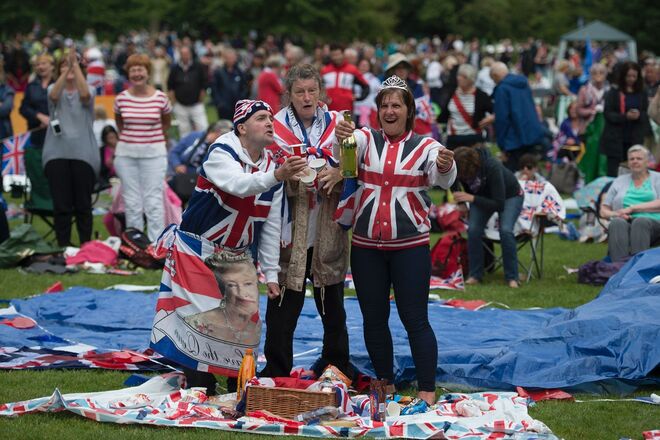 Pequenas festas foram organizadas pelo povo britânico, os jardins encheram-se de súbditos, assim como uma das maiores avenidas da capital inglesa, a The Mall, que liga o Buckingham Palace a Trafalgar Square, onde milhares de pessoas aguardaram horas para ver passar a família real.