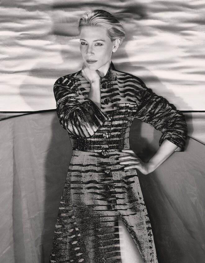 Com os cabelos louros colados à testa, calças de jogging e colete em cabedal, Cate Blanchett [Ivanhoe, Austrália, 1969] avança, lentamente, pelo Salon Proust do hotel Ritz, em Paris. O grande Marcel poderia ter pensado que esta mulher longilínea, felina e cheia de garra seria a versão atual e perfeita da sua duquesa de Guermantes, se tivesse de reescrever Em Busca do Tempo Perdido. Cate sorri perante esta ideia, considerando-a barroca. "Não sou uma dessas coquettes obcecadas pelos jantares na cidade. Sou uma rapariga do campo", explica a estrela que acaba de se instalar numa região rural dos arredores de Londres, onde trata dos quatro filhos e do jardim. "O último capricho da minha família é plantarmos uma floresta no nosso pedaço de terra. Sabe, estou longe das mundanidades da vossa querida Oriane [de Guermantes]." Exceto em outubro passado, em plena Semana da Moda de Paris, onde exibiu um look roqueiro na plateia de uma série de desfiles. Se necessário, a musa do perfume Sì e amiga íntima do seu criador, Giorgio Armani, também sabe adotar um estilo andrógino à la Bowie e fazer poses de mulher fatal, vestindo um fato-calça rosa velho e brincos de esmalte pesados, fazendo desfilar a sua silhueta esguia, em forma de vírgula, pelas passadeiras vermelhas, como as divas de Hollywood da década de 1950. Cate Blanchett, artista colossal, excede-se em metamorfoses. Ela é um camaleão, na vida e no cinema, capaz de deslizar sem esforço pelos papéis mais extremos ou mais loucos, interpretando com a mesma inteligência a rainha Isabel I de Inglaterra, a elfa Galadriel n’O Senhor dos Anéis ou uma mulher à beira de um ataque de nervos em Blue Jasmine. Segue-se a entrevista.