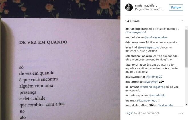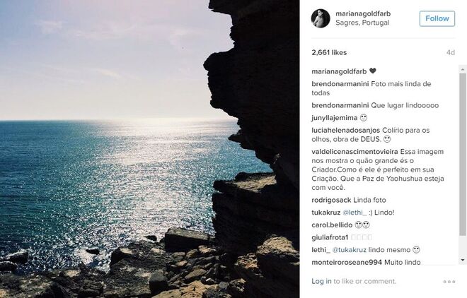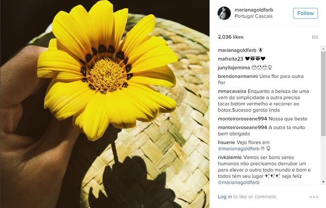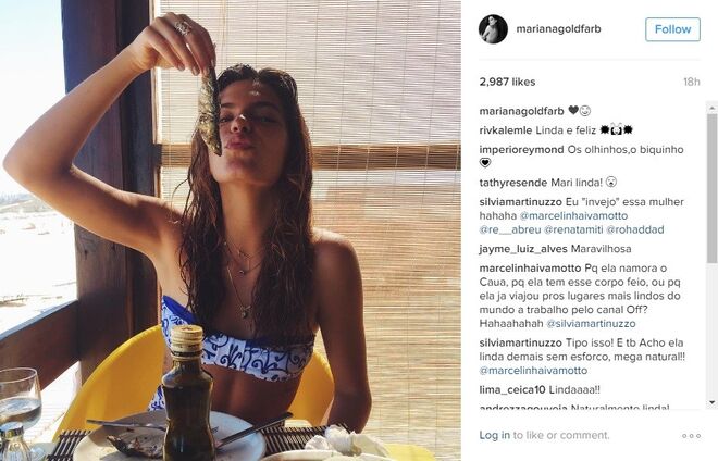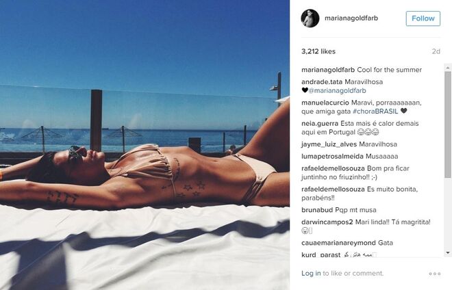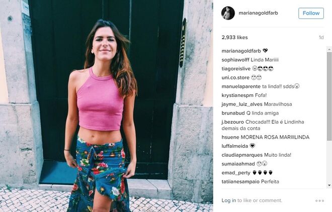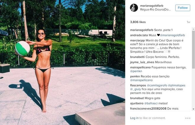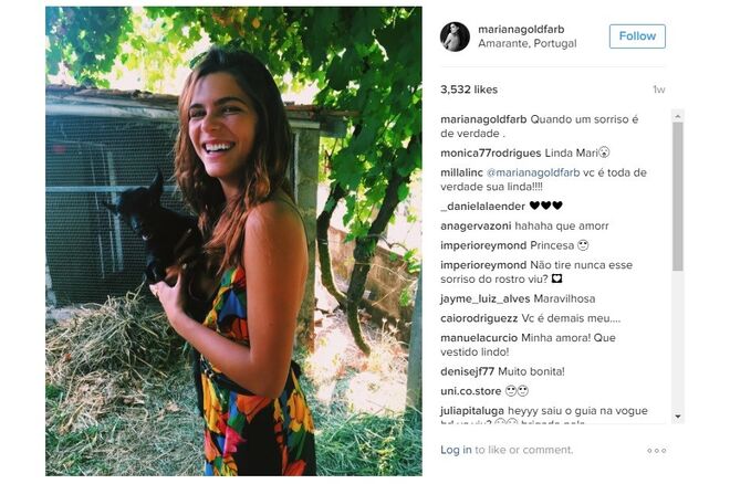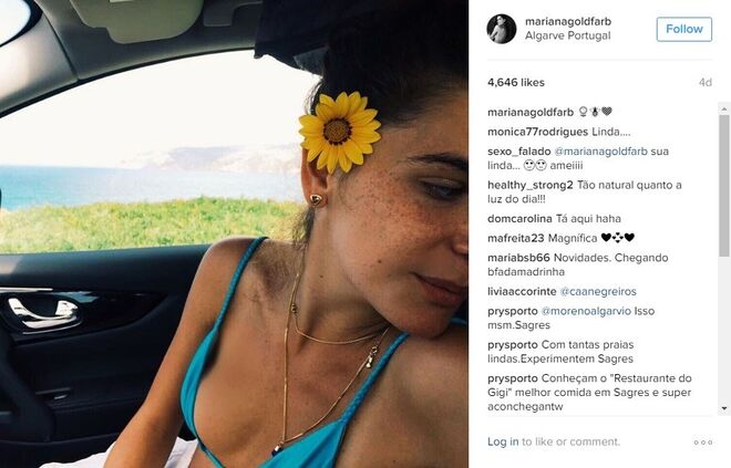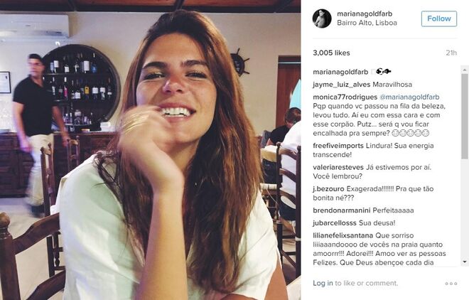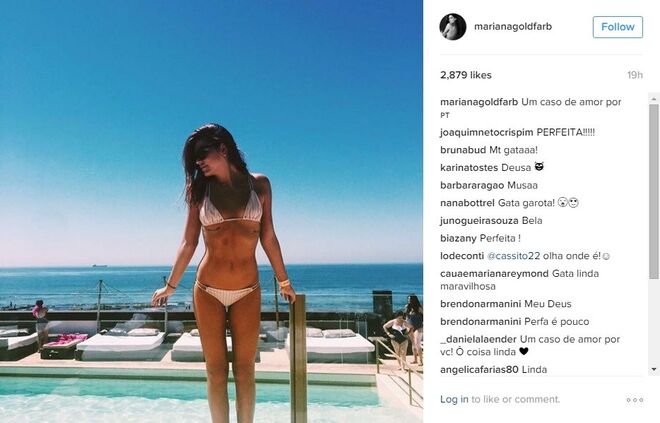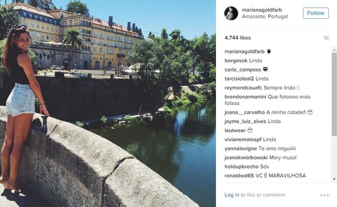 Mariana Goldfarb é praticamente anónima em Portugal, não fossem os milhares de fãs que tem conquistado no instagram - mais precisamente 88 mil -, com excelentes fotografias e uma beleza fora de série. Mas o verdadeiro boom de notoriedade da modelo e apresentadora deu-se no início deste ano, quando o namoro com Cauã Reymond, galã de novelas da Globo, se tornou público (recorde aqui).