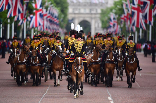 After watching an impressive display of skill and disciplines from @GrenadierGds soldiers, Her Majesty The Queen leaves her Birthday Parade and heads to Buckingham Palace @RoyalFamily pic.twitter.com/ltbs5qhpd6