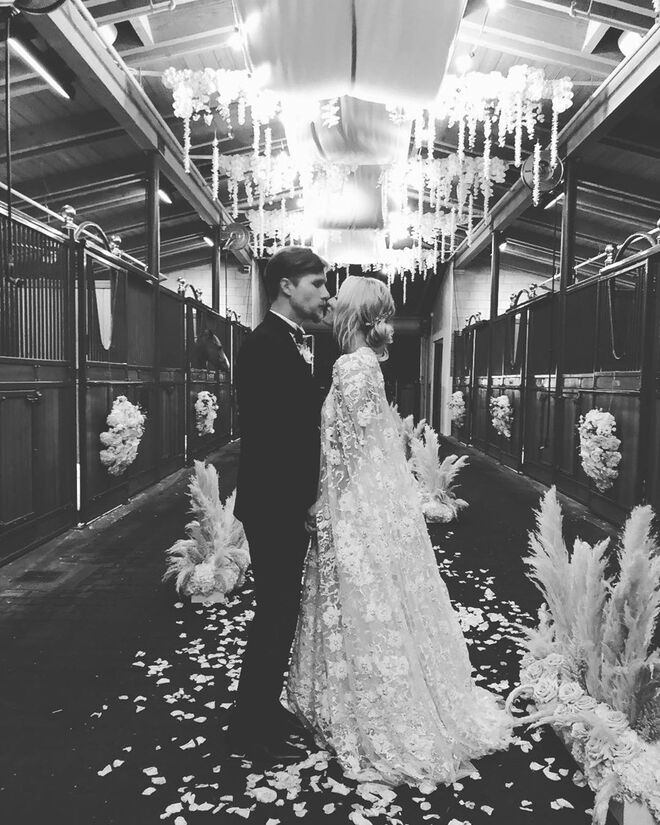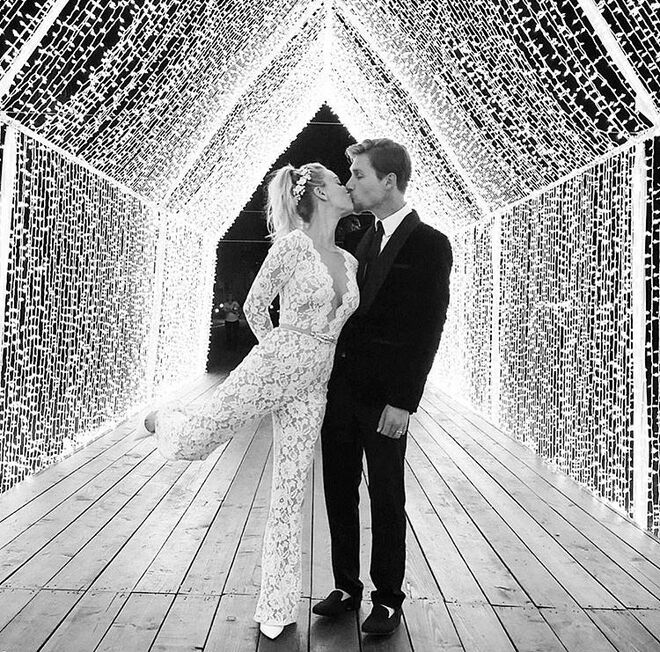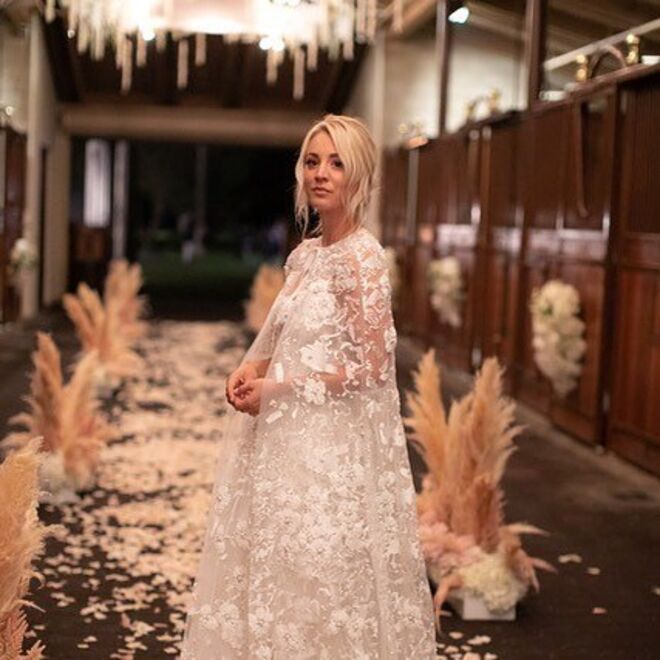 No sábado, a estrela da série A Teoria do Big Bang, Kaley Cuoco, casou-se com o cavaleiro equestre Karl Cook, num rancho em San Diego, na Califórnia. A atriz partilhou imagens da festa no seu perfil do Instagram. A noiva usou dois vestidos, um para a cerimónia e outro para o copo-d’água. O primeiro foi um modelo rendado sem mangas da Reem Acra, composto por uma capa. Já para a festa, Kaley optou por um macacão da Tadashi Shoji.