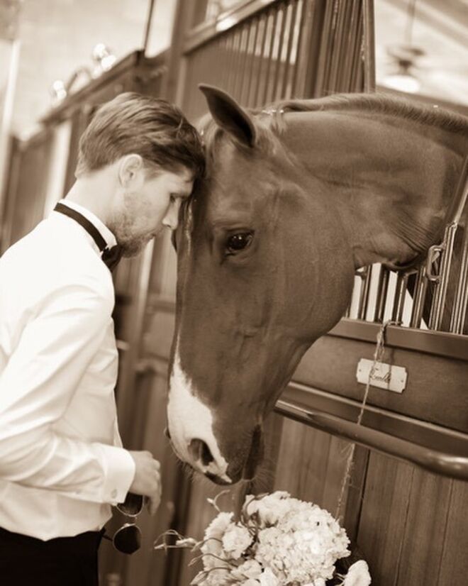 As celebridades presentes incluíam Mayim Bialik e Johnny Galeck, colegas de elenco de Cuoco. A decoração refletiu o amor do casal por cavalos e cães. Os noivos caminharam pelos estábulos e montaram em cavalos para chegar ao altar. O cachorro de estimação de Kaley e Cook também marcou presença. Ao invés de receberem presentes, os noivos pediram que fossem feitas doações para um centro de acolhimento de cães.