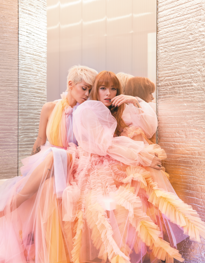 Foi enquanto juradas do programa The Voice que encontraram palco para uma amizade assim. Aos poucos tiveram tempo para descobrir afinidades e para aceitar as diferenças que gostam de enumerar, nem que seja só para se rirem com elas, como duas crianças ao despique: "A Marisa tem uma identidade muito própria e eu aceito-a como ela é, mesmo que isso me faça alguma confusão..." [risos]. E então surge uma longa e divertida descrição dos vestidos mais extravagantes que Marisa usou naquele programa e que abre espaço para as comparações mais inusitadas onde cabem personagens infantis como o Poupas da Rua Sésamo. Admitem que têm gostos diferentes ("São precisamente as nossas diferenças que nos unem", assegura Marisa), mas preferem assumi-lo, mais agora a bordo de um projeto comum. "Nós tínhamos a ideia de gravar um disco juntas, há muito, mas precisámos de tempo. Afinal, esta é uma decisão que muda muita coisa. Vamos andar na estrada juntas e vamos partilhar camarins, programas, entrevistas, tudo. Tem de haver uma base forte de sustentação, caso contrário é só business e o ‘problema’ é que nenhuma das duas se limita a fazer isso. Não sabemos o dia de amanhã e eu quero é ser feliz a fazer coisas que me encham de orgulho e que possa mostrar aos meus filhos. Não abraço projetos só com o intuito de fazer dinheiro..." Marisa dixit. Assim, sem outro propósito que não seja o de celebrar a amizade e o enorme amor que têm pela música chegaram ao 9, o primeiro disco d’Elas, produzido por Tiago Pais Dias [o marido de Marisa que é guitarrista e seu colega na banda Amor Electro]. Nove, o número que a numerologia associa ao amor universal, ao altruísmo, à espiritualidade e à fraternidade, mas também à sabedoria, ao poder do espírito, às pessoas solidárias, artísticas e criativas. Nove também porque são esses os temas do alinhamento, cinco originais [assinados por Afonso Cabral, Jorge Cruz, Márcio Silva e Tiago Machado] e quatro versões de músicas bem conhecidas. Depois de mergulharem numa banda sonora comum, Aurea escolheu interpretar Natural Woman, de Aretha Franklin, e Ouvi Dizer, dos Ornatos Violeta, enquanto Marisa optou por Glory Box, dos Portishead, e Inquietação, de José Mário Branco. As escolhas foram naturais, fáceis e descomplicadas. Como ambas aparentam ser uma com a outra. "Quando se faz um dueto, não podemos limitar-nos a ouvir a outra voz. Temos de sentir o que estamos a fazer. E acontecia-me muito, principalmente quando cantava com outras mulheres, sentir que a música não era o mais importante. E isso não faz sentido para mim. Se a pessoa que está ao meu lado [a cantar] estiver apenas a debitar notas e técnica, eu rapidamente ‘desligo’ e começo a cantar de uma forma mecanizada que não me deixa feliz. Com a Aurea eu sei que isso não vai acontecer." Juntas prometem ser uma rede de segurança, mas também aquele empurrão extra que as vai tirar da zona de conforto. "A minha vida resume-se à minha família, aos meus amigos, aos Amor Electro, à [agência] Nação Valente e ao Elas. Eu não saio à noite, não estou nas redes sociais. Rodeio-me das pessoas em quem confio. É natural que eu pareça sempre segura porque, quando se é amado, está-se confortável", confidencia Marisa. Ainda assim, a vulnerabilidade permanece. A grande diferença é que, com o passar do tempo, Marisa passa a ser assumida de outra forma, eventualmente com a naturalidade que só chega com a maturidade. "Um artista atravessa vários momentos, por vezes num só dia. Do palco cheio com as pessoas de quem gostamos, à plateia que nos faz sentir acompanhados, ao quarto do hotel onde não há nada, nem ninguém. É preciso lidar com esses contrastes porque eles fazem parte. E nós crescemos com eles", analisa Aurea.