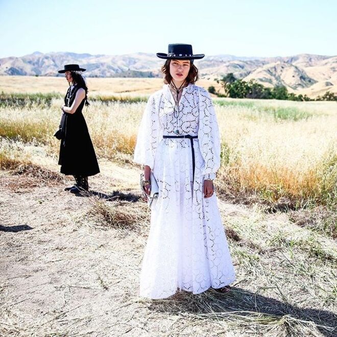 O vestido foi apresentado, pela primeira vez, no mais recente desfile da Dior e é uma das propostas de Maria Grazia Chiuri que apresentou uma coleção inspirada nos anos 60.