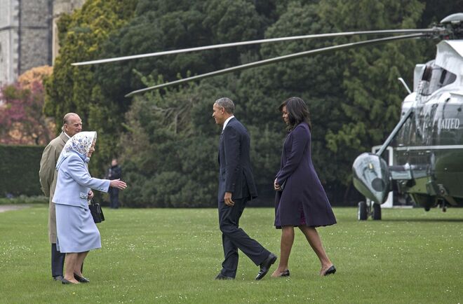 Durante os dois dias o casal Obama visitou a rainha Isabel II no Castelo de Windsor, onde chegaram de helicóptero, reuniram com o Primeiro Ministro britânico David Cameron em Downing Street, Londres, e ainda tiveram oportunidade de passar algum tempo no Palácio de Kensington, onde foram recebidos pelos Duques de Cambridge e pelo Príncipe Harry.