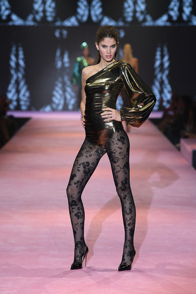É a primeira vez que a marca dedica um desfile à coleção de collants, meias e leggings. Julia Roberts esteve lá, bem como as portuguesas Joana Duarte, Ana Sofia Martins e Carolina Loureiro.