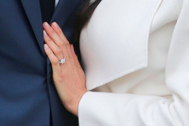 Obviamente, o elemento que mais brilhou foi o anel de noivado, desenhado pelo próprio Harry, com uma pedra preciosa central proveniente de Botswana, local onde o casal passou bastantes moemntos juntos, e vários diamantes da coleção pessoal da Princesa Diana.