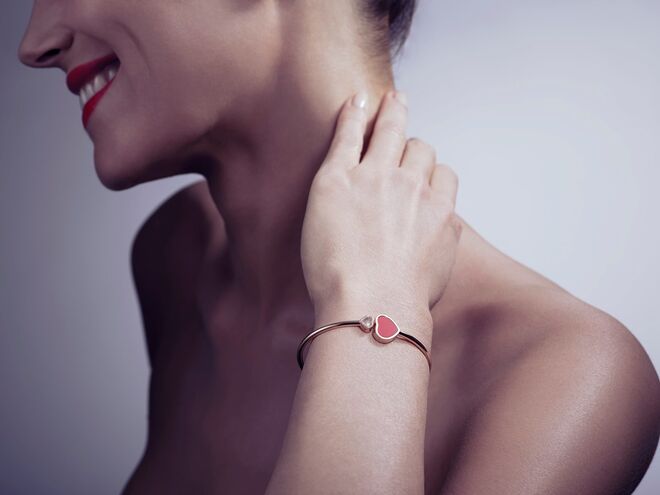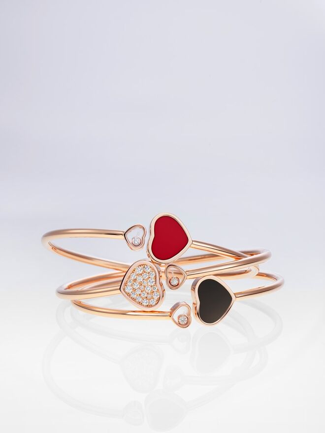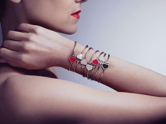 Diamantes e corações: dois símbolos emblemáticos da Chopard, marcam esta coleção. O símbolo do coração sempre foi um símbolo muito querido para Caroline Scheufele, diretora artística da marca, tornando-se um tema-chave para a Chopard. Estes símbolos encontraram naturalmente o seu caminho dentro da colecção Happy Diamonds dando origem à linha Happy Hearts, que inclui colares, pulseiras e brincos.