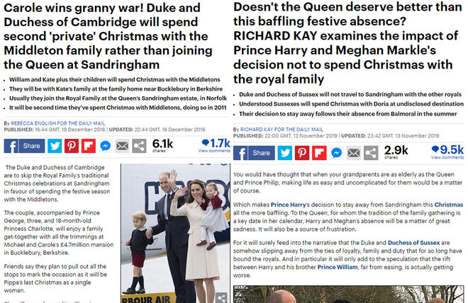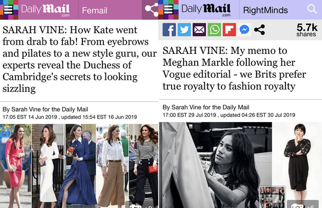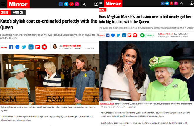 Desde o casamento com o príncipe Harry, parte dos media tem colocado a ex-atriz contra a sua cunhada. Enquanto nos primeiros anos do namoro de Kate com o príncipe William, esta foi apontada como uma "monótona escaladora social", hoje já não nos lembramos desses adjetivos maldosos porque Middleton é apresentada como o epítome da virtude feminina tradicionalista: é uma respeitável mãe (de três lindas crianças), é silenciosa, sempre discreta e altruísta.