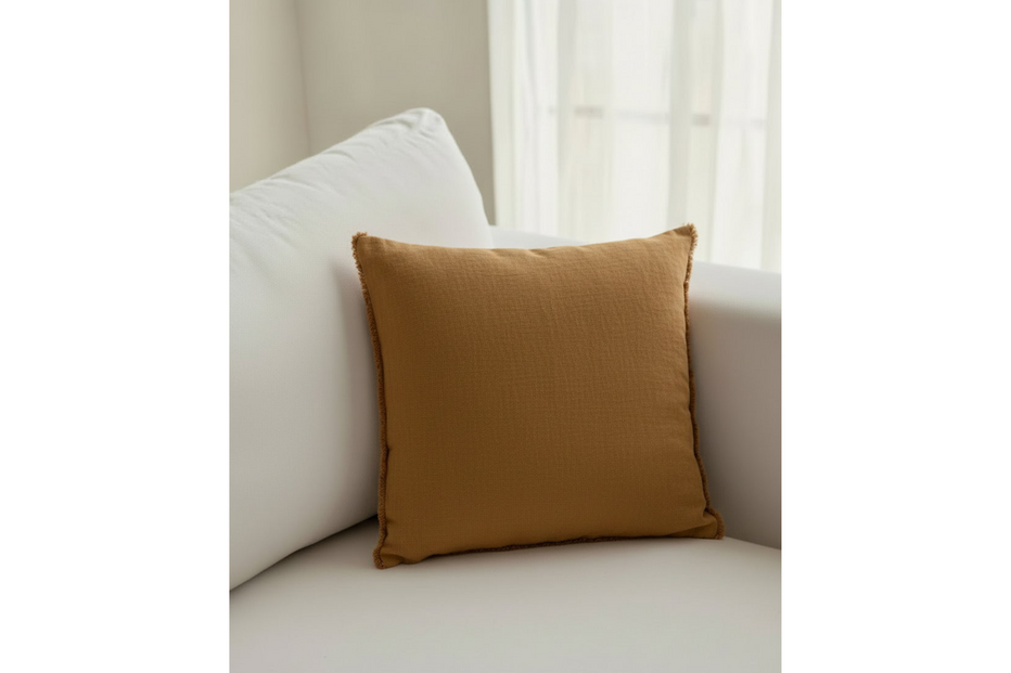 Por fim, os detalhes fazem toda a diferença, e é aqui que entra a cor. Uma almofada em tom ocre, por exemplo, pode parecer um elemento pequeno, mas tem o poder de aquecer instantaneamente o ambiente. Este tom, inspirado na terra e no sol, funciona especialmente bem em combinação com neutros, criando um equilíbrio entre frescura e aconchego.