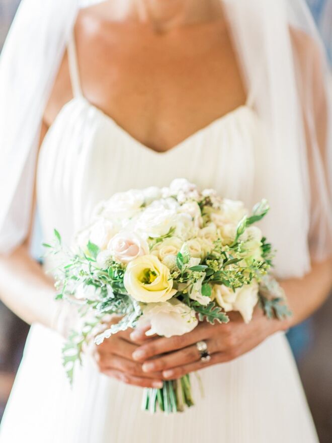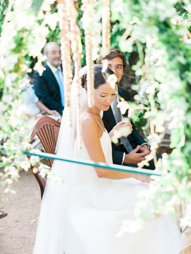 "Não são tradições importantes para mim mas, tive algo novo, o vestido; algo velho, as jóias; algo emprestado, também as jóias; algo azul, os brincos com águas marinhas, da minha avó, e o próprio anel de noivado com um safira."