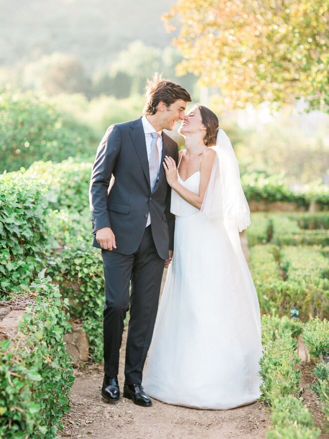 "Já estamos juntos há um tempo, quando nos casámos tínhamos um filho com 2 anos (o Manel) e agora temos também a Pia. A nossa vida já era de casados, falávamos às vezes na ideia de fazer uma festa para celebrar a nossa relação (talvez daqui a uns anos) mas o Miguel pediu-me em casamento em 2013 (numa enorme surpresa, com um super planeamento por trás)". Conta Maria Guedes, a autora do blog Stylista e a noiva surpreendida. "Nesse dia decidimos que 2014 seria o ano para festejarmos o facto de estarmos juntos e felizes." E assim foi! Conheceram-se nos Santos Populares há uns anos atrás e Maria conta que "Foi o timing perfeito e a pessoa perfeita, para os dois!". Casaram-se na quinta da família do noivo, em Setúbal, a 30 de agosto e ao sabor do fim das férias de verão numa festa marcada pela descontracção "Não havia lugares marcados nem pratos servidos; cada pessoa ia buscar o seu vinho e os seus pratos, tivemos uma banda muito animada que pôs toda a gente a cantar e dançar, uma dupla de fotógrafos que procurou apanhar todos os momentos sem que déssemos por isso, um DJ australiano muito doido, sessões de cantoria de alguns convidados que não resistiram e juntaram-se à banda, alguns mergulhos a meio da noite... e claro, todas as pessoas de quem nós mais gostamos connosco."