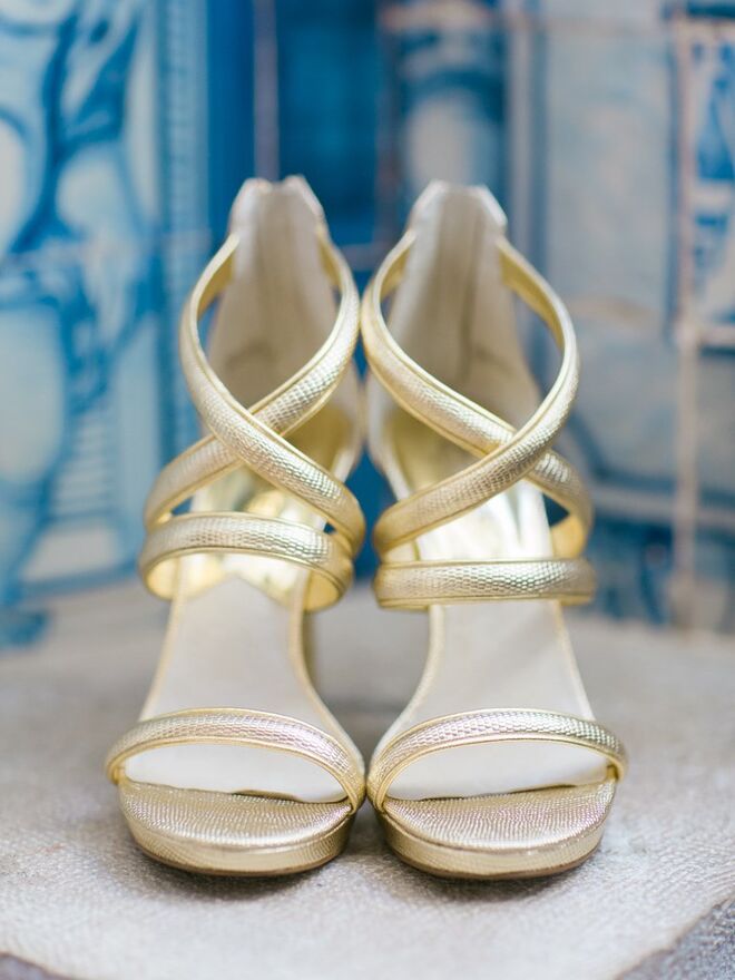 "Usei no cabelo 3 travessões da família do Miguel - usados por todas as mulheres da família em casamentos e debutes - que são verdadeiras relíquias, os brincos preferidos da minha avó, uma pulseira fina com umas bolinhas de ouro oferecida na véspera por uma grande amiga, e o anel de noivado. Usei também umas sandálias altíssimas que me destruiram os pés...!"
