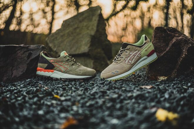 Já o modelo Gel-Lyte V foi desenvolvido em camurça bege, misturando detalhes em cor de laranja e as conhecidas stripes ASICS Tiger em verde. Ambos os modelos contam com a tecnologia de GEL da ASICS na media sola que proporciona bastante conforto. Para além disso incluem atacadores inspirados nas cordas de alpinismo, dando um toque de aventura que este pack precisa.
