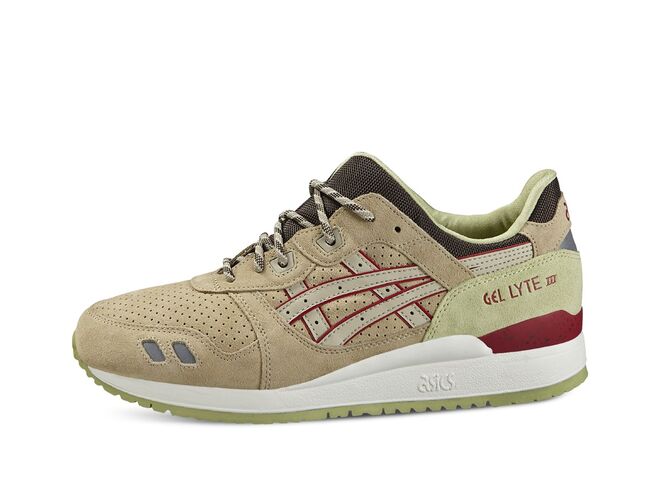 O Desert Pack é composto por dois míticos modelos ASICS Tiger: Gel-Lyte III e Gel-Lyte V. Ambos os modelos partilham uma gama de tons quentes e arenosos com apontamentos de laranja e vermelho. A clássica silhueta do modelo Gel-Lyte III, com a característica da língua bifurcada, apresenta um upper em camurça perfurada em tons de areia clara, misturado com detalhes de verde pastel e vermelho.