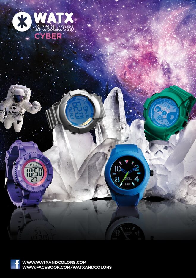 A Watx&Colors lança a sua primeira coleção Outono/Inverno 2015, a coleção mais "espacial" de sempre a CYBER, disponível na versão XS, M e XXL. Com braceletes metalizadas e mostradores com efeito iridescente conseguirá os looks intergaláxicos e cheios de reflexos. Combine os quatro tons das braceletes desta coleção, Matrix (cinza), Galaxy (azul), Andromeda (roxo) e Kryptonite (verde) com os mostradores digitais, analógicos e Rock e crie o seu Watx&Color CYBER.