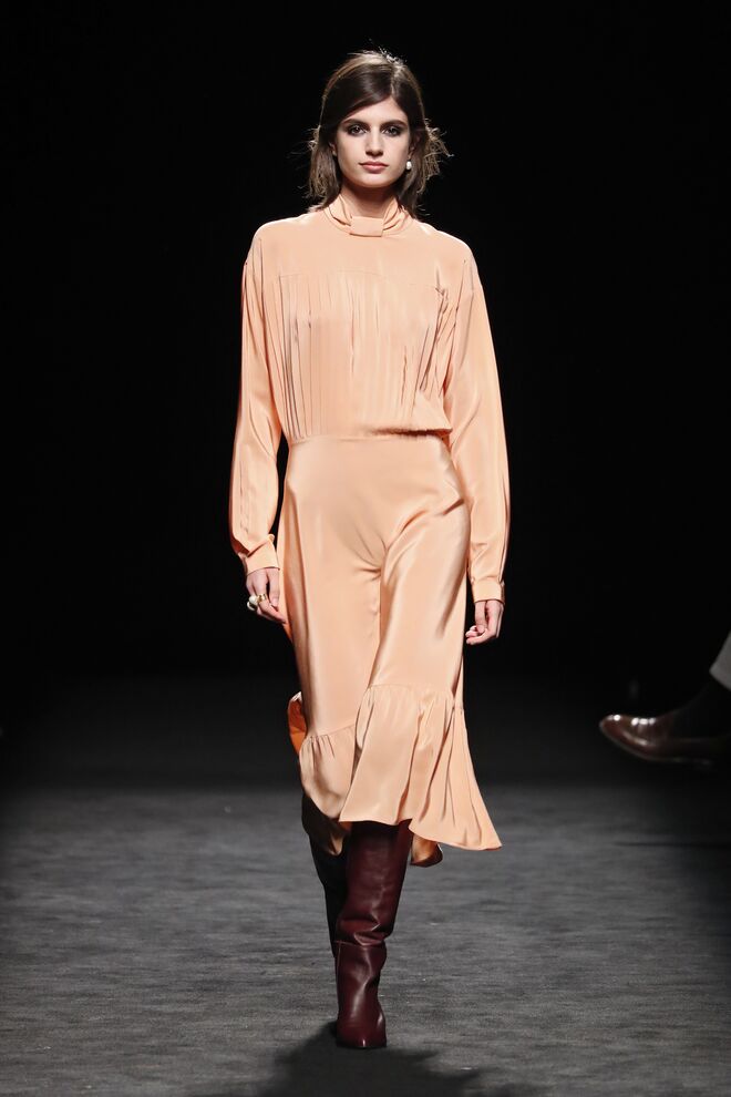 A nova coleção outono-inverno 2020/21 marca a primeira apresentação do galego Jorge Vazquez, o novo designer da marca de luxo. As modelos desfilaram a alfaiataria impecável ao som de uma orquestra sinfónica ao vivo com 32 músicos e sob o teto de vidro da Galería de Cristal, do Palácio de Cibeles, iluminado com fúcsia (o tom oficial da marca). A banda sonora foi composta para a ocasião. "Foi a primeira vez na minha vida [que orquestrei num desfile]. Foi muito emocionante", partilhou com a Máxima o maestro Raul Miguel. "Eu acredito que seja o mesclar de duas artes, para mim a música e a moda são ambas artes", rematou.
