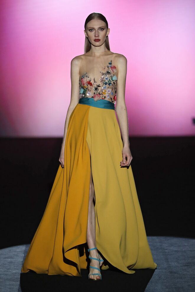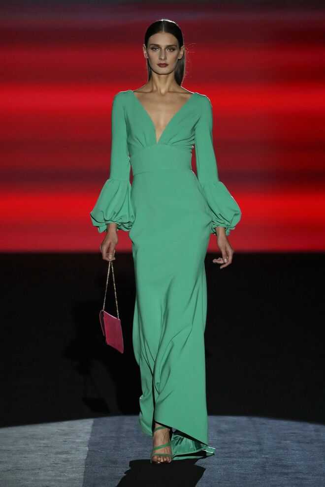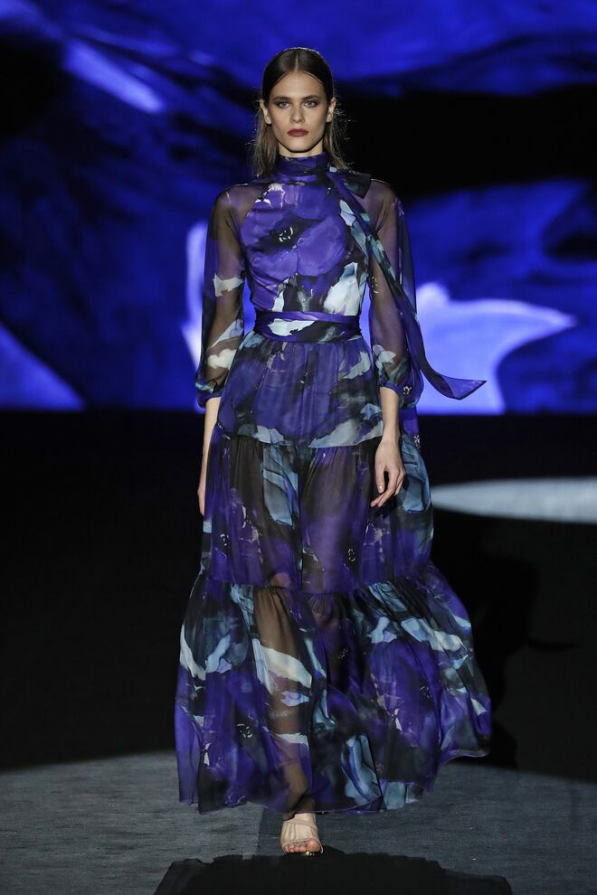 A cor é um dos recursos com os quais Laguna procura chamar mudar neste outono- inverno 2020/21. A nova coleção, intitulada Phantasize, é um estudo da feminilidade através dos longos vestidos de noite. A força visual cromática recorre ao verde, fúcsia, roxo e amarelo e é aprimorada por padrões poderosos. Como alternativa, um lado delicado e romântico, com flores bordadas em relevo nos tules.