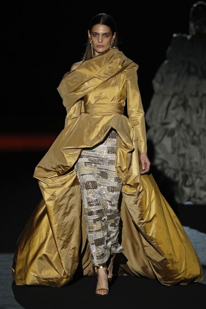 Já vestiu a rainha Letizia e María Begoña Gómez Fernández, mulher do atual presidente de Espanha e a sua nova coleção é uma ode a Cristóbal Balenciaga. Para além das mangas volumosas, destaque para os espartilhos e cintos com grandes fivelas, sem esquecer dos lindos chapéus, a la Courrèges, confecionados por Sevana Nana Golmar.