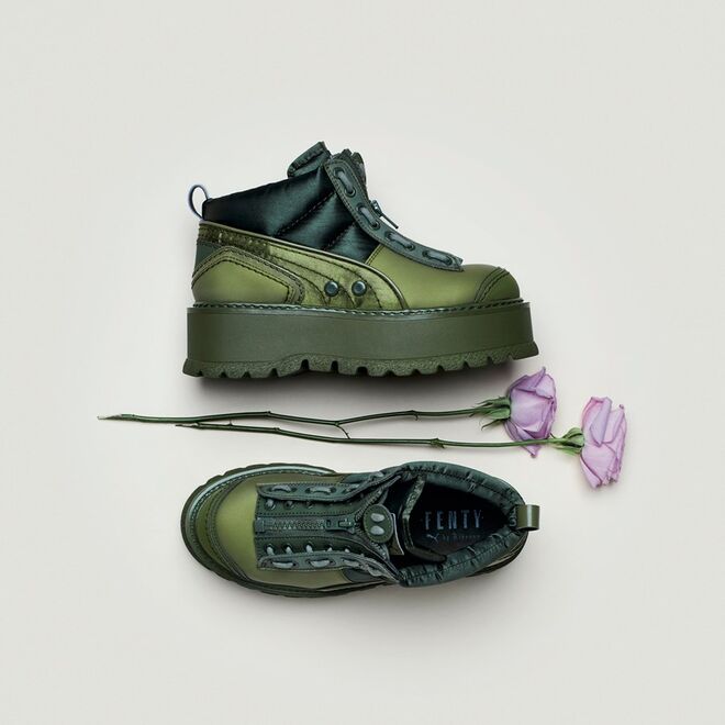 Rihanna volta a colaboerar com a Puma e apresentou recentemente a nova coleção na Paris Fashion Week. Trata-se da coleção de outono-inverno 2017/18. Dias depois deste desfile, chega às lojas da marca a coleção de sapatos primavera-verão 2017. Botins desportivos com tacão agulha, sandálias rasas, sneakers... são vários os géneros disponíveis. É uma coleção que ou é adorada ou detestada... Os preços vão dos 90 aos 450 euros.