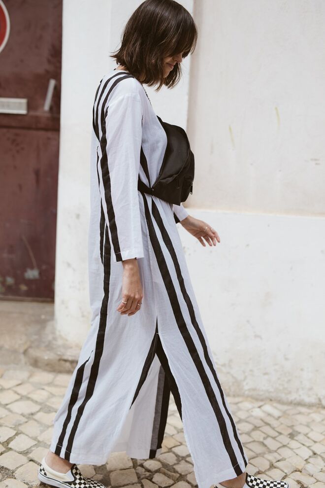 "Gosto de estar confortável, mais do que qualquer outra coisa! Não penso muito no que vou vestir no dia a seguir, acordo e ‘logo se vê’". Descontraída, explica que tanto pode vestir uma T-shirt masculina como um vestido com flores. Conta que há dias, vestiu um look total branco e que as pessoas se mostraram admiradas, uma vez que o preto total é uma das suas opções preferidas. Porém, é tal como insiste: na hora de vestir não há filtros e é mesmo o que lhe apetece. Só não é para se ficar admirado.