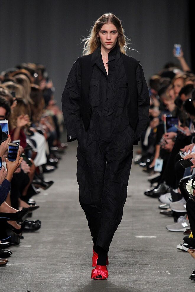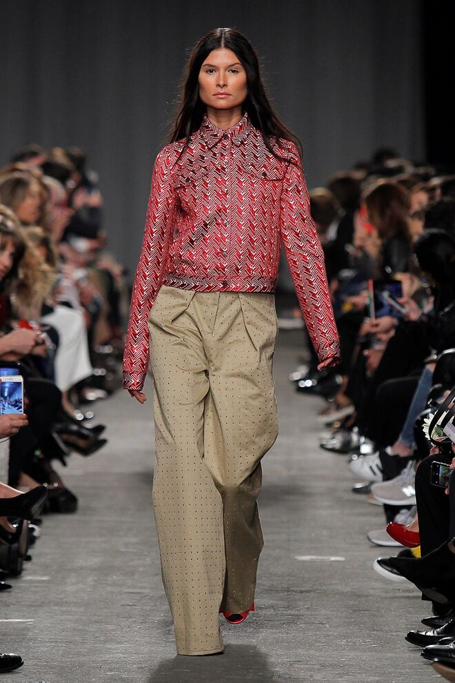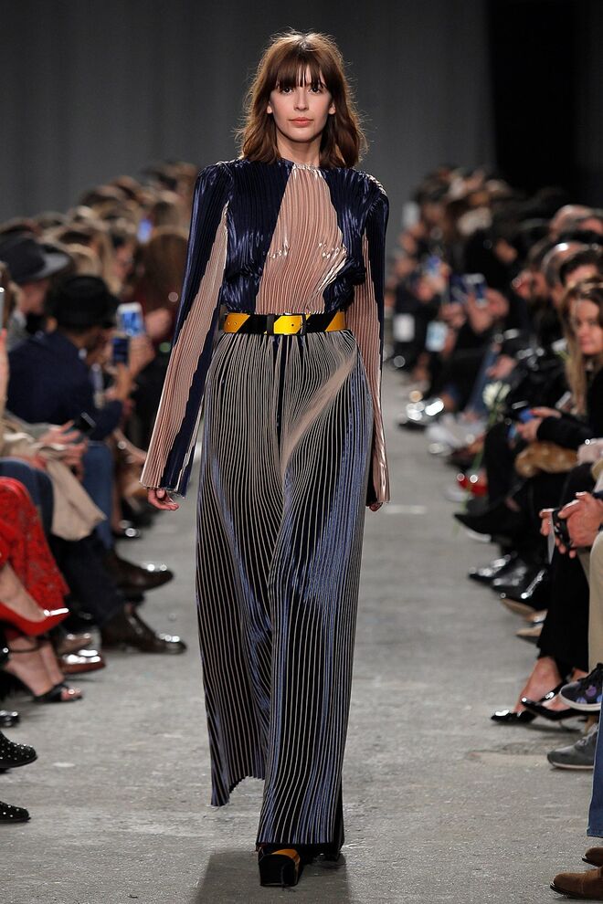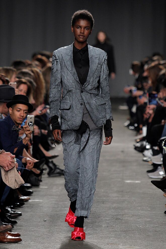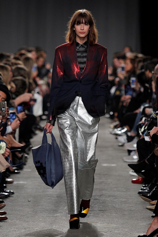 Os volumes apresentam-se amplos, de corte alfaiate, e combinam com a fluidez dos estampados e camisas amplas brancas. Os plissados também estiveram presentes e receberam acabamentos técnicos.